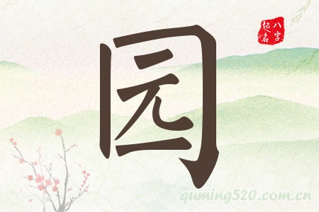 与园字部首相同的字:国 圆 因 囡